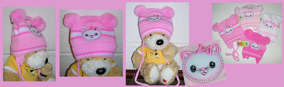 3224 Шапка + шарф + варежки 36-40 см Цена: 590 руб. | Шапочка двойная «Кошечка» 36-44 см Цена: 250 руб. |